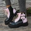 Mode Süße Rosa Schleife Mix Farbe Stiefeletten Damen 2025 Herbst Dicke Sohle Schnürstiefel Candy Punk Metall Dekoration Stiefeletten Größe 42