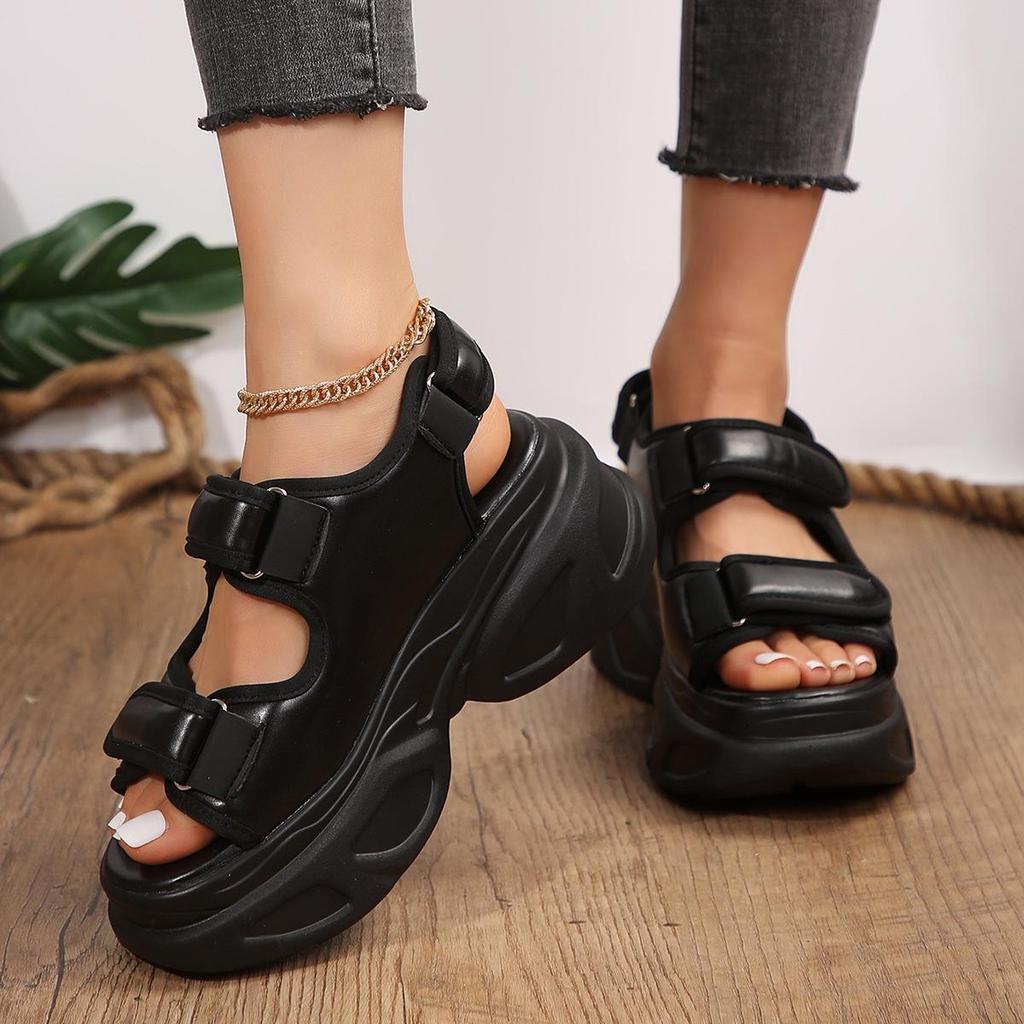 Europäischer und Amerikanischer Stil Plateausohle Klettverschluss Sandalen – Übergröße, Modisches Design mit dicker Sohle