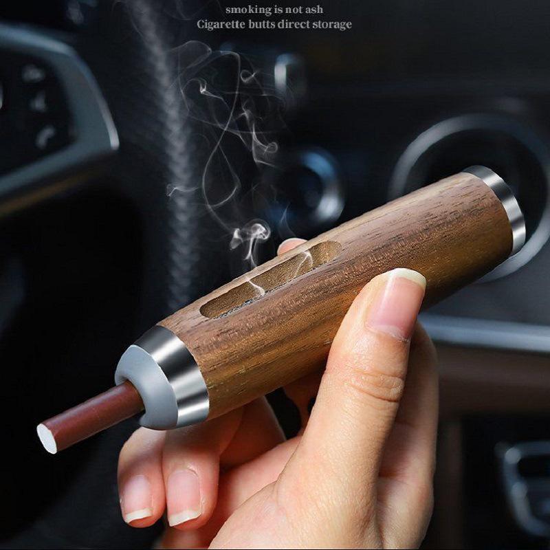 Non-Drop Ash Smoking Accessory: Silicone Cigarette Holder & Mini Walnut Ashtray