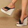 Mode Sommer Streetstyle Rattanflechtwerk Plateau Wedges Pantoletten Sandalen Damenmode Hohe Absätze Damenschuhe Zapatos Mujer
