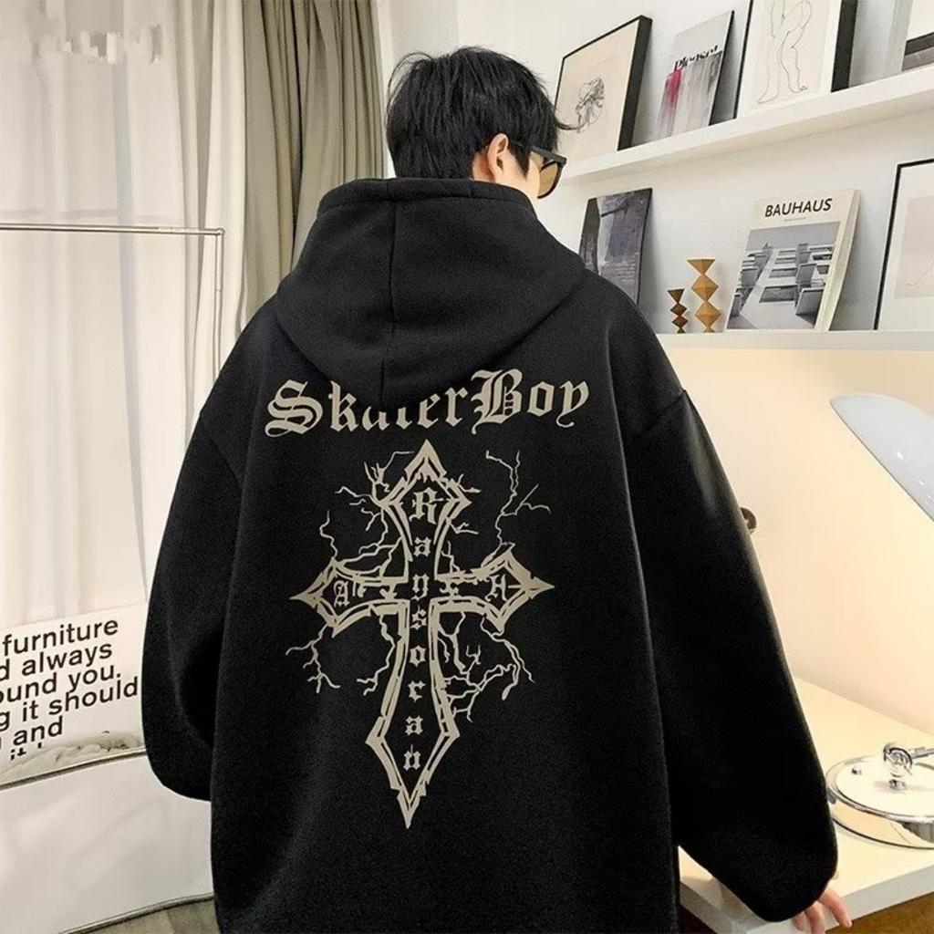 New European and American Men's Autumn Cross Gothic Letter Printed Comfortable Breathable Hoodie Outdoor City High Street Hoodie