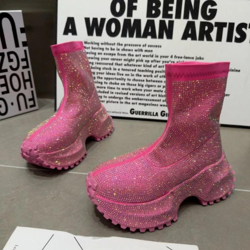 Mode Kristall High Heels Damen Stiefeletten Plateau Mode Elegante Schuhe 2025 Winter Goth Chelsea Boots Pumps Neu Schnee Mujer Botas