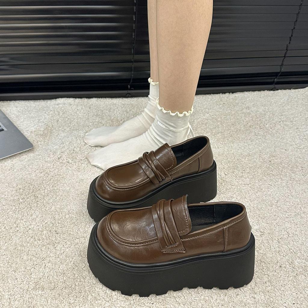 Vielseitige braune Retro-Lederschuhe im britischen Stil mit Plateauabsatz, Damen Herbst und Winter neue Modelle
