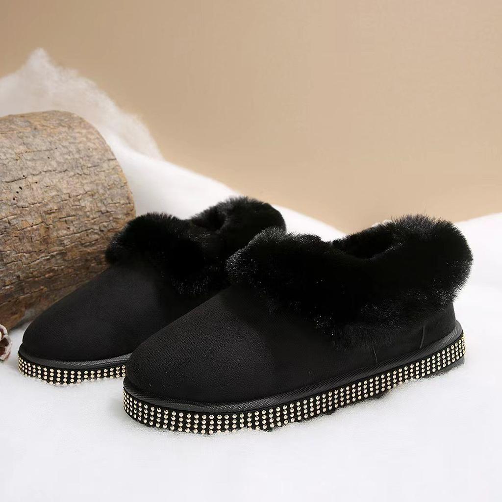 Dicksohlige Samt verdickte warme Schneestiefel Winter neu rundköpfige Strass dekorative flauschige Schuhe