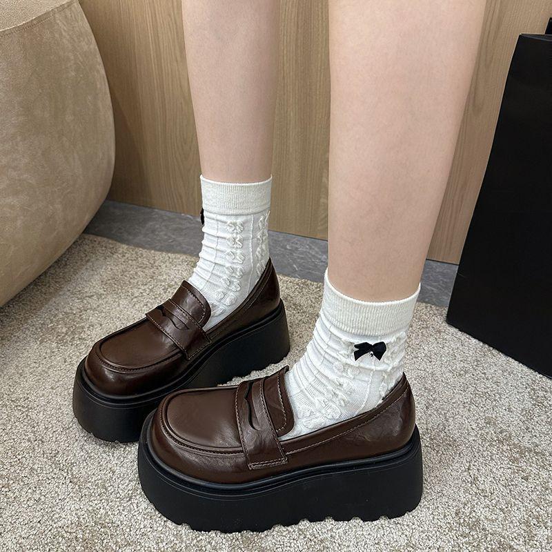Einzelschuhe kleine Lederschuhe Damen Frühling und Sommer neu dicke Sohlen erhöhen Höhe Britischer Stil Pendeln kleine Einzelschuhe