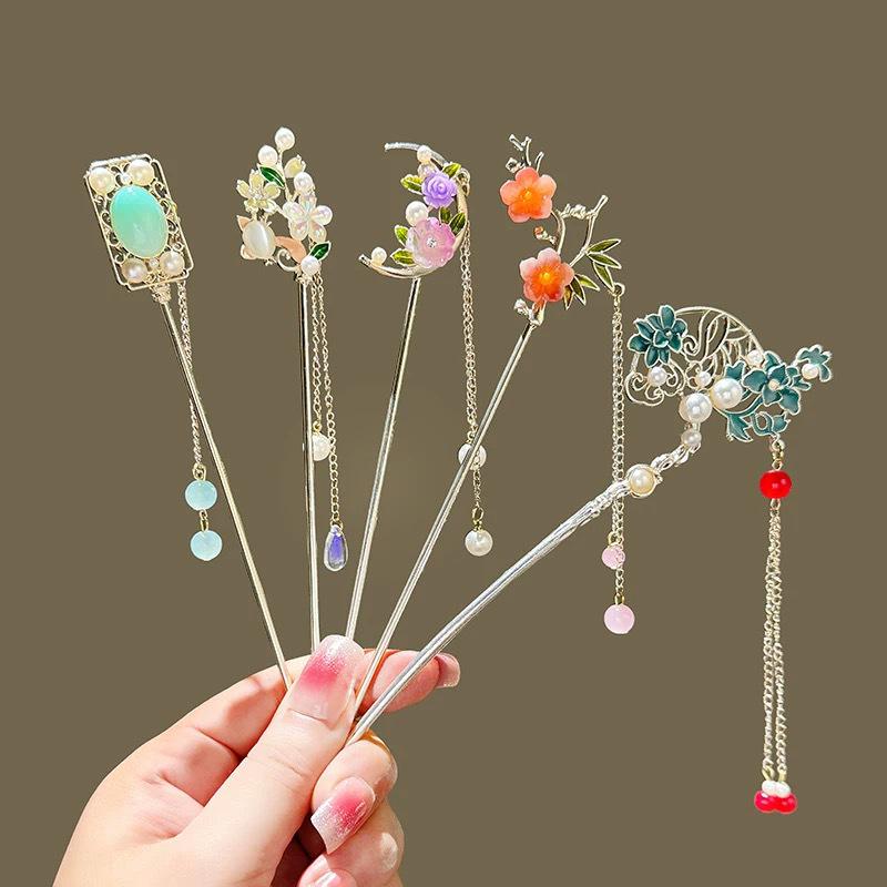 Exquisite Pfirsichblüten Quaste Haarnadel für Hanfu Hochsteckfrisur