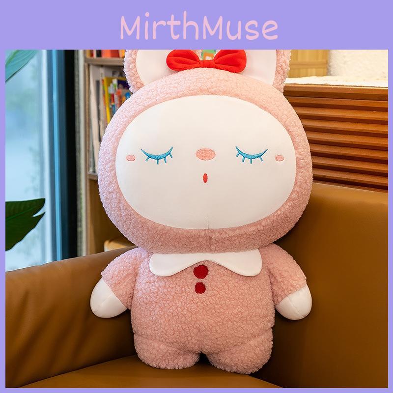 This versatile plush rabbit features a unique, non-cartoon design with round or sleepy eyes, appealing to a wide range of ages.