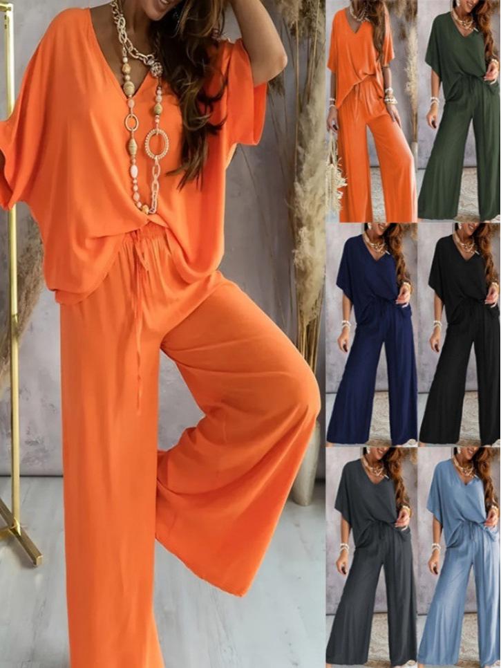 Experience effortless style and comfort with this V-Neck Batwing Sleeve Casual Two-Piece Set. Perfect for any laid-back occasion, this ensemble features a solid pattern and is crafted from luxurious milk silk, known for its soft and smooth texture. The artificial silk material provides a chic and breathable feel. The set includes a top with a flattering V-neckline and batwing sleeves, paired with wide-leg pants that offer a relaxed yet fashionable silhouette. Ideal for those who appreciate blending casual ease with a touch of elegance.