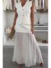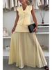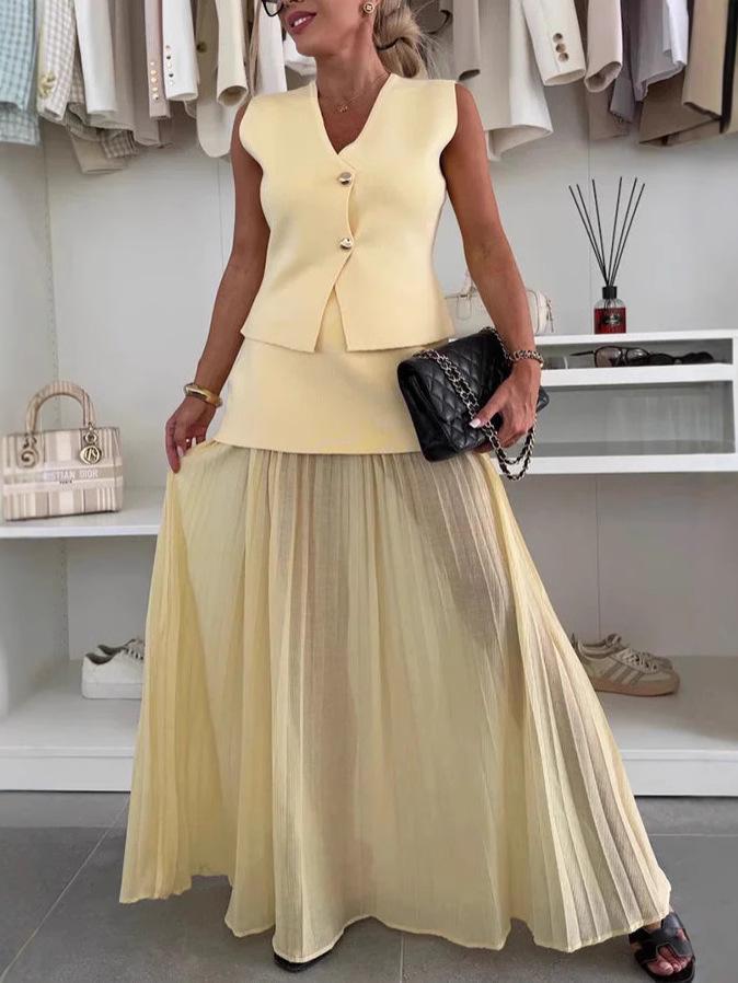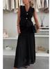 Wir stellen ein schickes und vielseitiges Outfit vor, perfekt für die Sommergarderobe der modernen Frau.. Dieses zweiteilige Set besteht aus einer figurschmeichelnden Strickweste aus hochwertigem Polyester, die eine bequeme und schmeichelhafte Passform bietet.. Begleitend zur Weste gibt es ein gerafftes Patchwork-Langarmkleid aus Tüll, ebenfalls aus strapazierfähigem Polyester gefertigt, das dem Ensemble eine elegante und luftige Note verleiht.. Dieses Set ist im sportlichen Stil gestaltet und eignet sich ideal sowohl für legere Ausflüge als auch für gehobenere Anlässe, da es nahtlos Komfort und Raffinesse vereint.