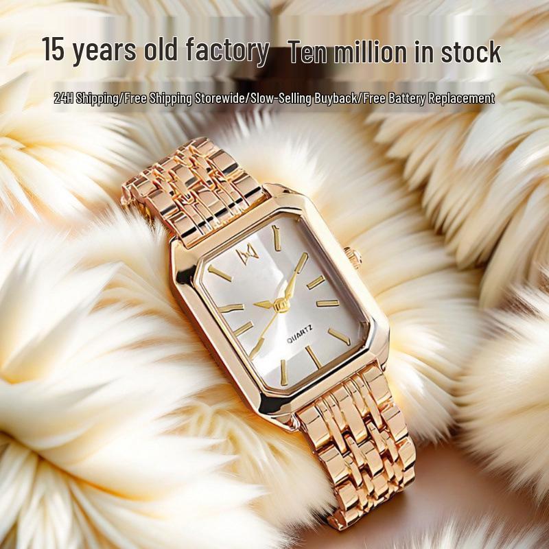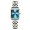 Damen High-End Pfauengrün Rechteckige Stahlbanduhr