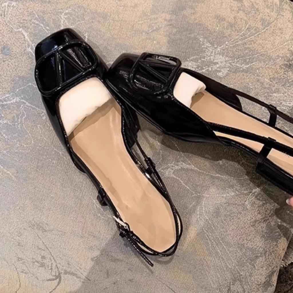 Rosa Französische flache Sandalen mit Tasche für den Zeh Damen Sommer 2025 neu vielseitig quadratische Schnalle hinten offen einzelne Schuhe flache Schuhe