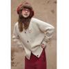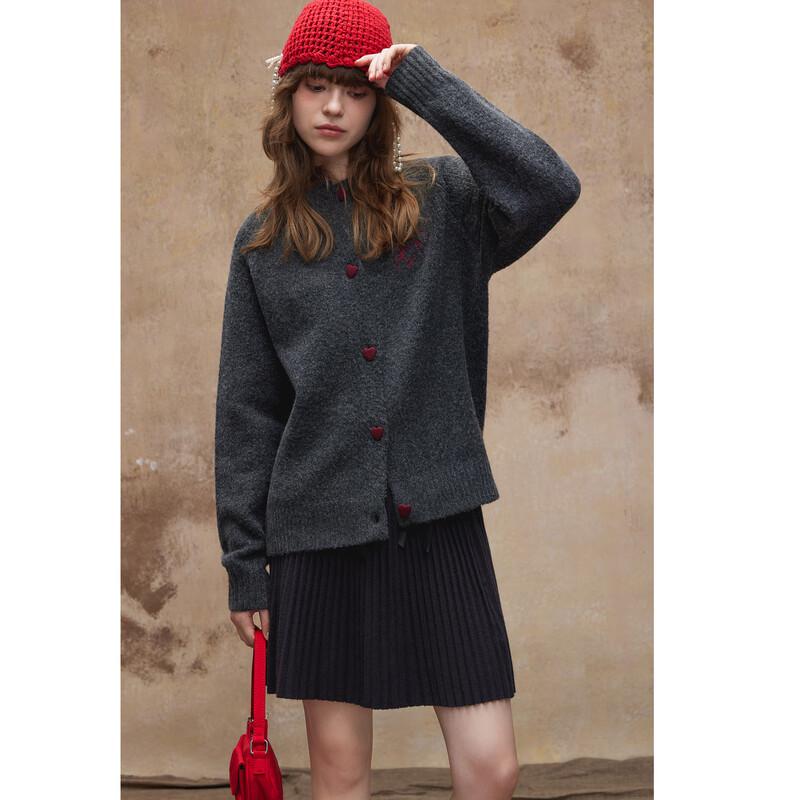 TonLion Women's Round Neck Solid Heart Button Knit Cardigan