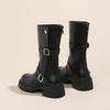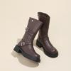 Vintage Western Ritterstiefel Damen 2025 Herbst und Winter neu runde Spitze dicker Absatz britische Martin Stiefel quadratische Schnalle mittelhohe Stiefel