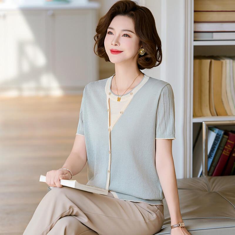 Elegantes Damen Sommer Eis Seide Strick T-Shirt