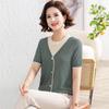 Elegant Ice Silk Short Sleeve Knit Top for Middle-Aged Women