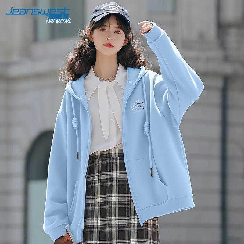JEANSWEST Damen Locker Geschnittener Kapuzen-Cardigan mit Reißverschluss