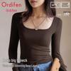 Oudifen Women's Brushed Low U-Neck Long Sleeve Base Layer T-Shirt