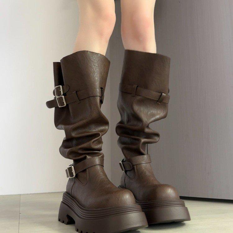 Maillard Grober Absatz Holzstiefel Kinder 2025 Herbst Skinny Aber Kniehohe Stiefel Ritterstiefel Frauen