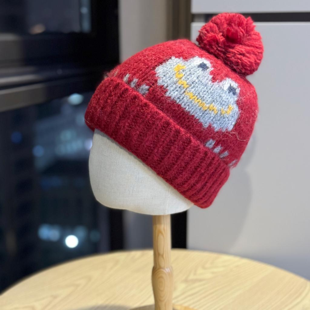 Neue Niedliche Jacquard Frosch Pelzkugel Wollmütze für Damen Modische Herbst- und Winter-Wärme-Ohrenschützer Gestrickte Mütze für Herren Pullovermütze