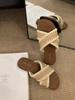 Ethno-Stil gewebte Zehensteg-Hausschuhe mit flachem Boden Damen Sommerbekleidung böhmisch Badeurlaub Strand-Sandalen Damen