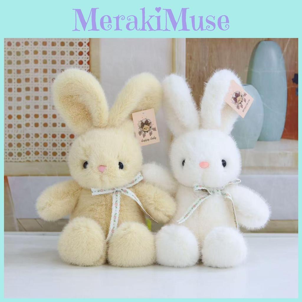 Plush Rabbit Cute Stuffed Animal Toy With Ribbon Bow For Home Decor Office
