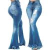 Sexy und vielseitige Mode Slim Fit Ripped Denim Schlaghosen für europäische und amerikanische Damen