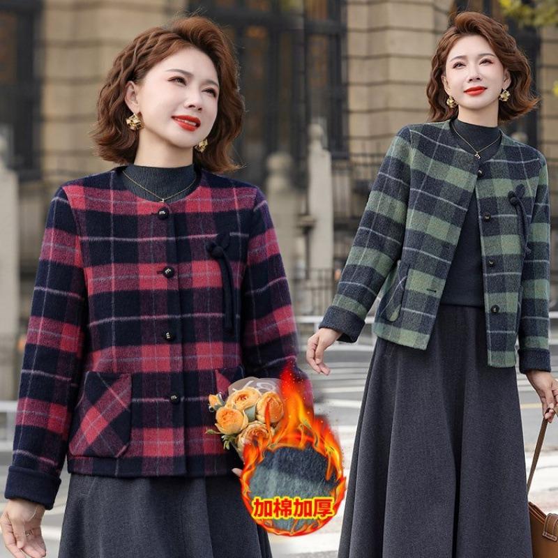 Early autumn and winter new mother small coat thickened and velvet plaid coat