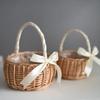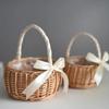 Ein Korb aus Weidenrattan für Blumenkinder mit Henkel und Schleife Handgeflochtener Osterkorb Weidenkorb für Hochzeiten