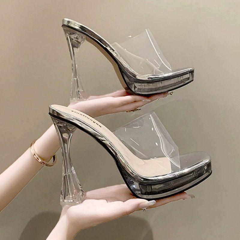 Transparenter Kristall dicker Absatz mit Sandalen neue kleine superhohe Absätze Pole Dance Damenschuhe Laufstegschuhe