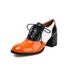 Retro britischer Stil Damen Einzelschuhe Farbabstimmung Brock dicker Absatz hoher Absatz Schnürung vorne Freizeitschuhe hoher Absatz Damen Einzelschuhe