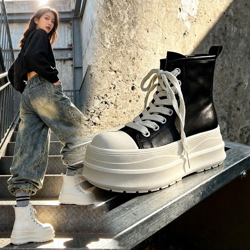 Dicksölig erhöhende Damen neue Herbst kleine vielseitige Brotschuhe High-Top großköpfige Board-Schuhe