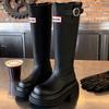 Retro rote Stiefel Damen Herbst und Winter neu Britischer Stil vielseitig und dünn dicksohlige erhöhende Ritterstiefel Damen