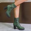 Große Schnür-Mode-Stiefel Herbst und Winter neu hochhackig seitlicher Reißverschluss Schnalle Gürtel niedrigschaftig runde Zehe Damenstiefel