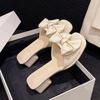Aphixta 2025 Neue Sommer 4,5cm Quadratabsatz Pantoletten Süße Damenschuhe Schmetterlingsknoten-Design Quadratische Zehenpartie Pantoletten Sandalen Klassische Schuhe