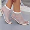 Große Größe flache Netzschuhe Sommer neu runde Zehen Sandalen hohl Internet-Berühmtheit Diamant kurze Stiefel Spot