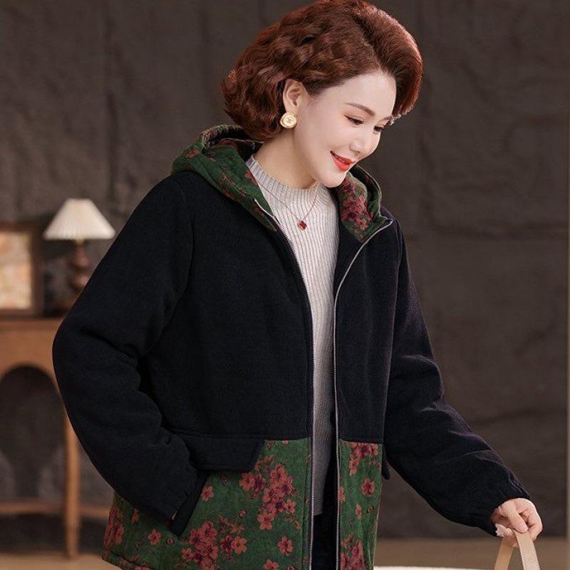 Winter new large size fashion and thin mother outfit velvet thickened hooded cotton-padded coat medium and old coat