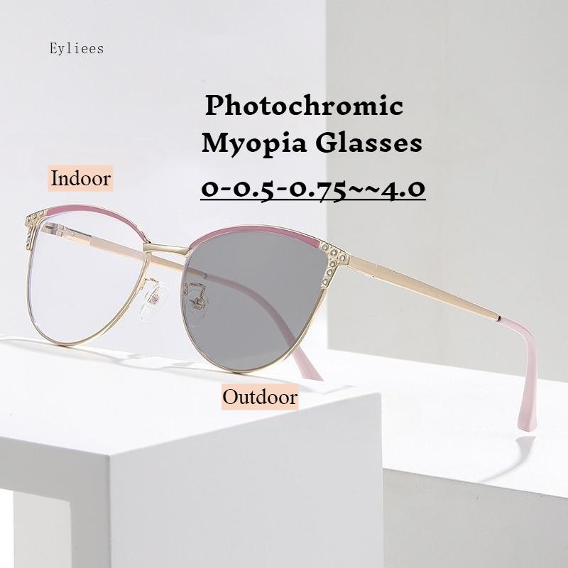 Blaulichtfilternde, farbwechselnde Brille, großer Rahmen, ultraleichte, flache Gläser, Myopie-Sonnenbrille, photochrome Brille bis -4,0