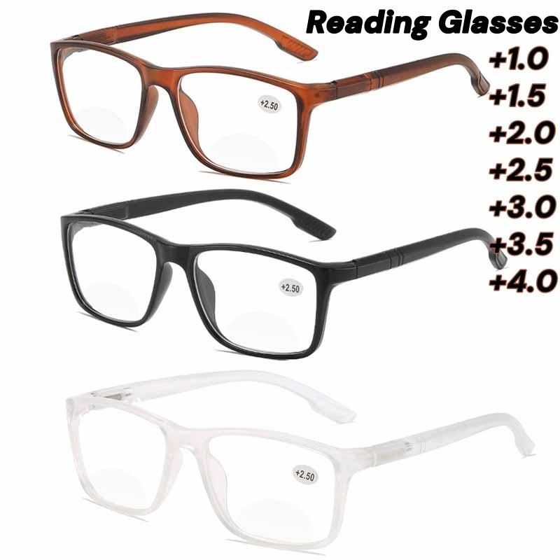 Ultraleichte quadratische Bifokal-Lesebrille für Damen und Herren, hochauflösende mobile Alterssichtigkeit-Brille mit Federscharnieren, Dioptrien