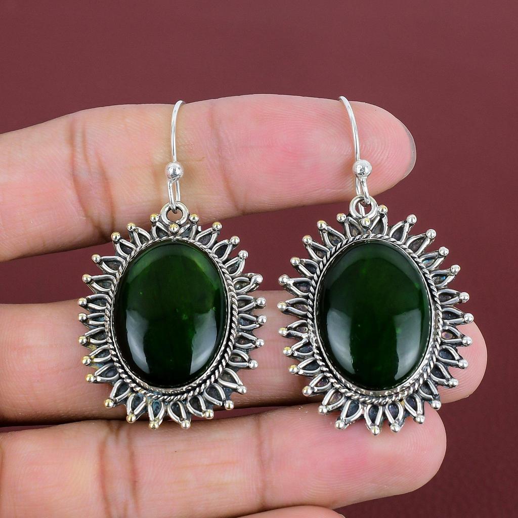Grüner Feuer Labradorit Ohrring Original Edelstein Ohrring 925 Sterling Silber Ohrring Handarbeit Eleganter Schmuck Hochzeitsgeschenke Designer Ohrring