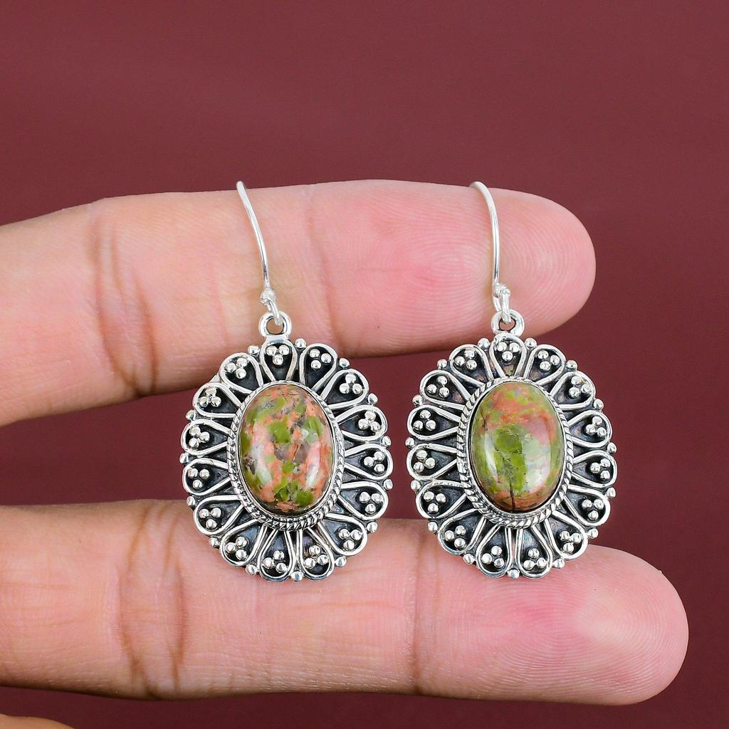 Unakite Earrings Gemstone Earring Vintage Jewelry 925 Sterling Silver Earring Very Pretty Unakite Jewelry Handmade Earring Anniversary Gifts