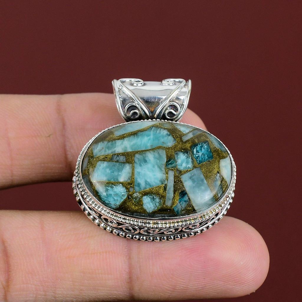 Copper Amazonite Pendant 925 Sterling Silver Pendant Wonderful Vintage Pendant Amazonite Gemstone Jewelry Handmade Pendant Anniversary Gifts