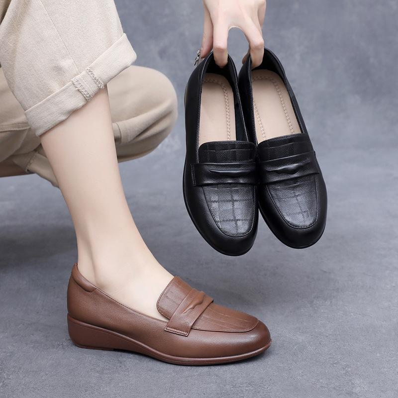 Mode GKTINOO 2025 Retro Mama Schuhe Damen Echtes Leder Große Größe Rutschfest Lässige Slipper Damen Weiche Lässige Sneaker Flache Schuhe