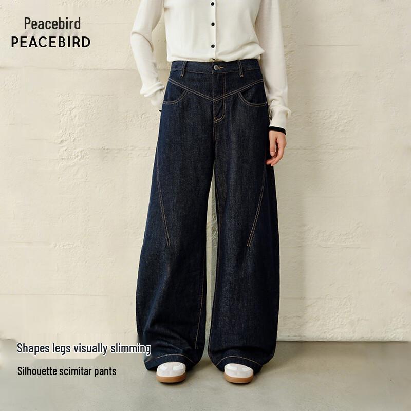 PEACEBIRD Women's High-Waist Curved Banana Wide-Leg Jeans
