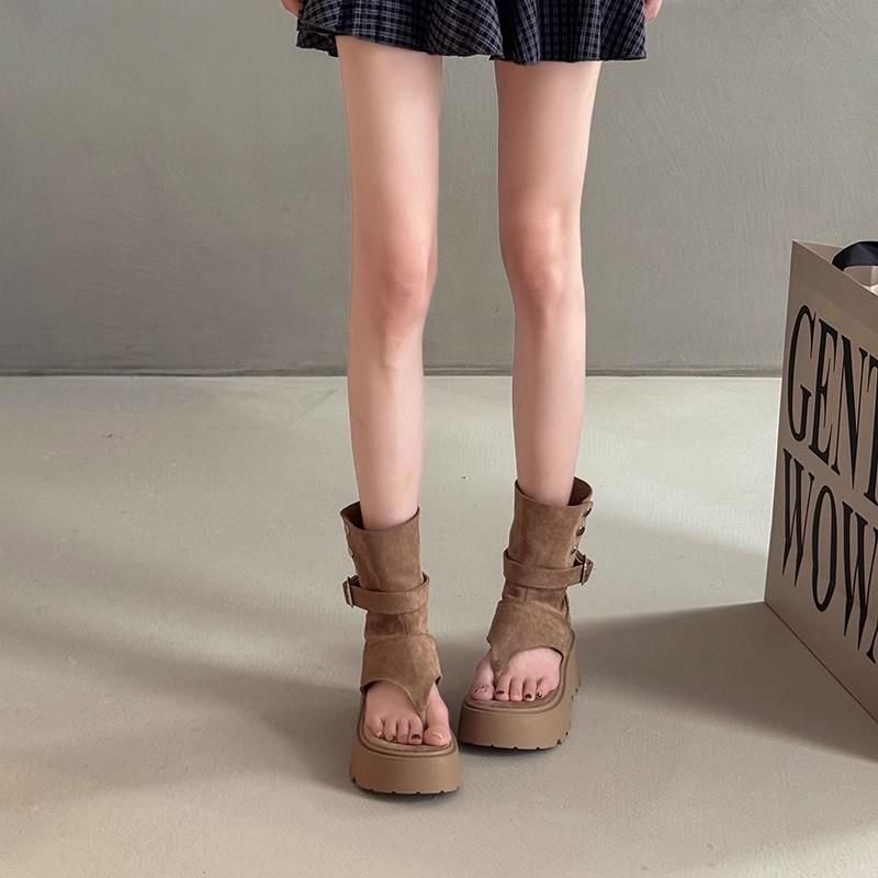 Mode Plateausandalen Damen Retro Kleine Kleidung Martin Stiefel Lokomotivstiefel Heißes Mädchen Bequeme Römische Kurze Stiefel Tide