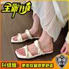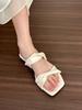 Französische einfarbige coole Hausschuhe Damen 2025 neu Sommer süße eckige Zehen vielseitige Ein-Wort-Pantoletten mit Rock flache Sandalen
