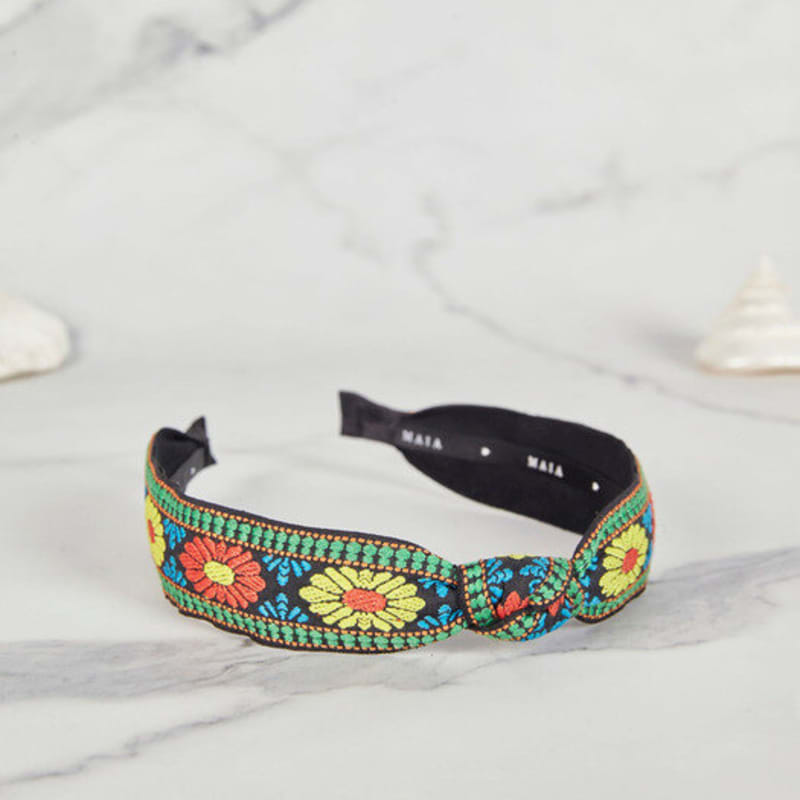 MAIA Grünes florales Jacquard-Haarband - Geknotet Orange Grün