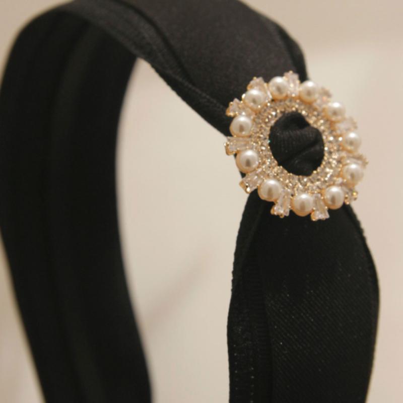J.Lauren Black Fabric Gold Pearl Cubic Hairband H0750