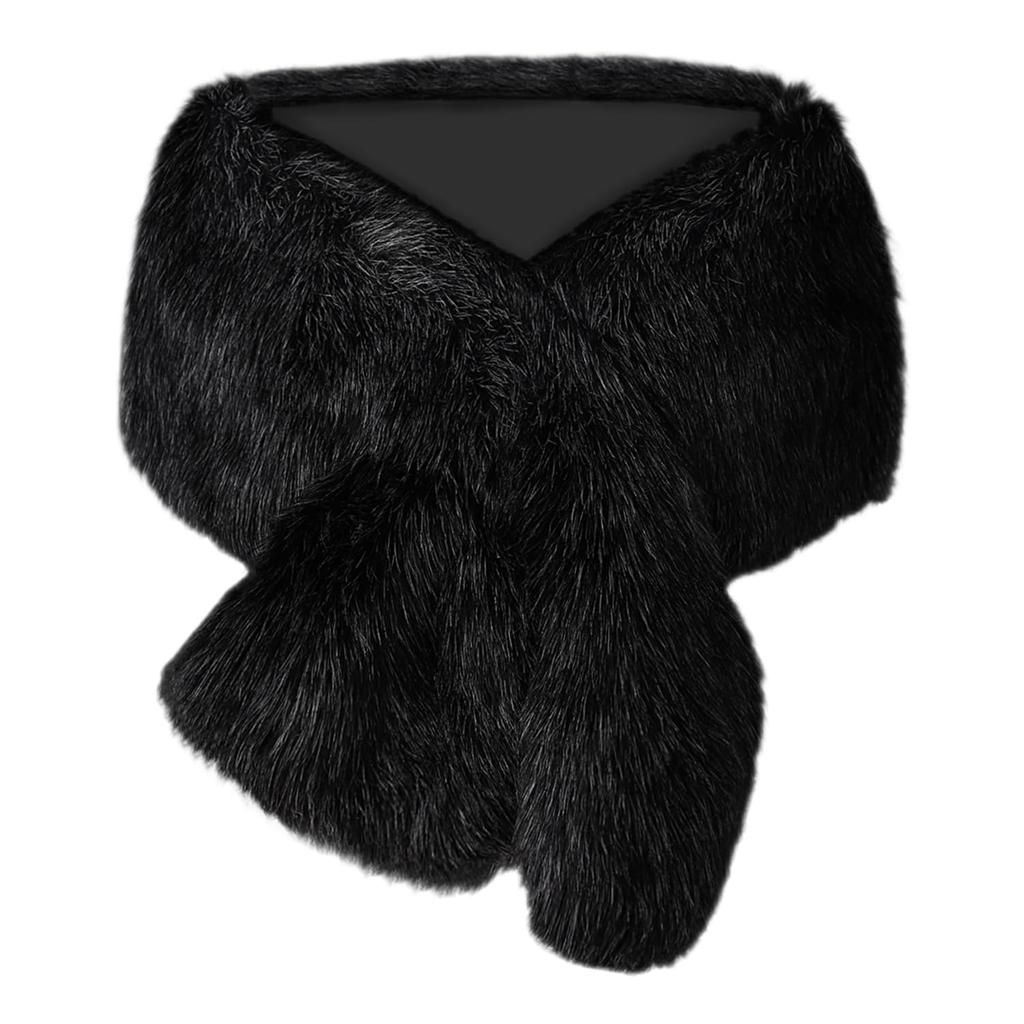 Muzhilun Faux Fur Warm Black Elegant Fur Gorgeous Stole for and Fur Perfect for Formal New and Parties with White Shawl, Eco-Fur, Fur, Thick, Large,