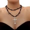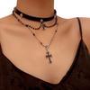 European and American Jewelry Gothic Cross Multi-layer Beaded Necklace Heavy Industry Versatile Medieval Niche Collarbone Chain Women