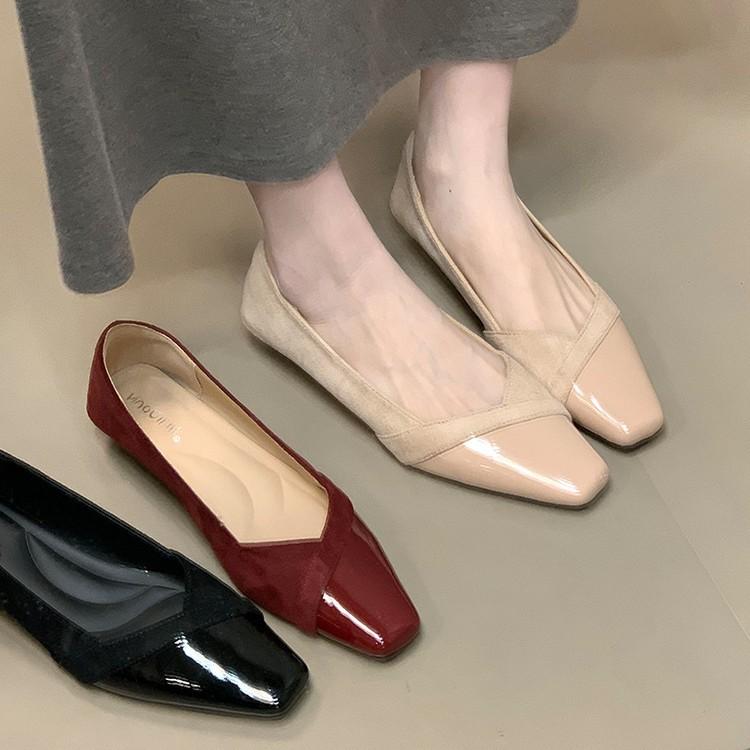 Lan Cabinet Edition Französischer Xiaoxiangfeng Lässige Einzelne Schuhe Damen 2025 Herbst Wildleder Spleißen Abendschuhe Pendler Sanfte Schuhe